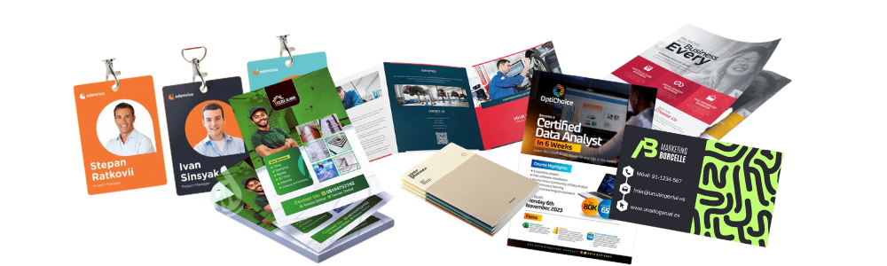 √ Impresión Corporativa: Tarjetas de presentación, agendas, carpetas, carnés y toda la papelería que tu empresa necesita para proyectar una imagen profesional.